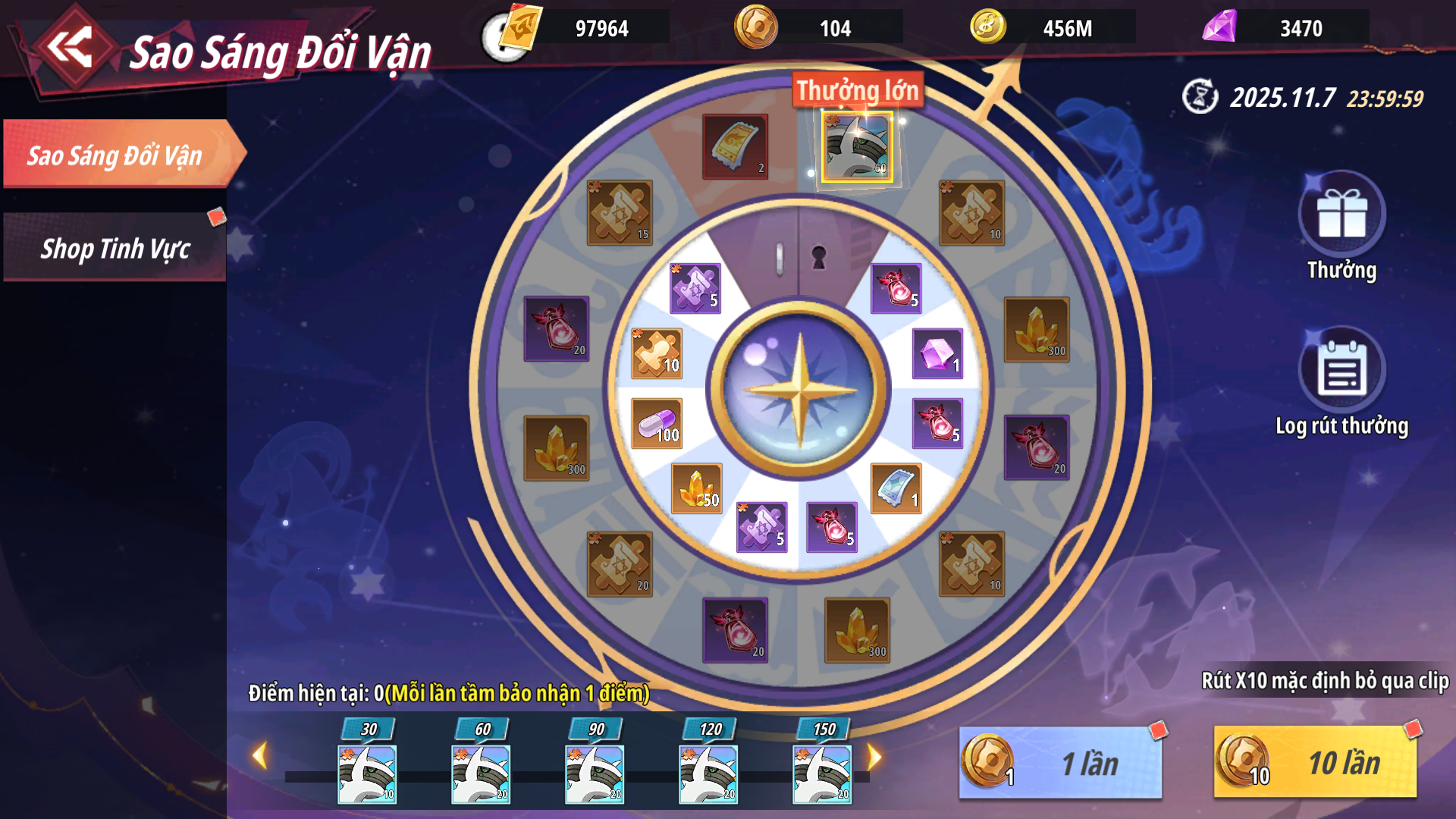 - Tham gia sự kiện Sao Sáng Đổi Vận, sử dụng Bụi Sao Quay 12 Chòm Sao rút thưởng, đảm bảo cơ hội nhận được mảnh thú triệu hồi SSS - Arceus