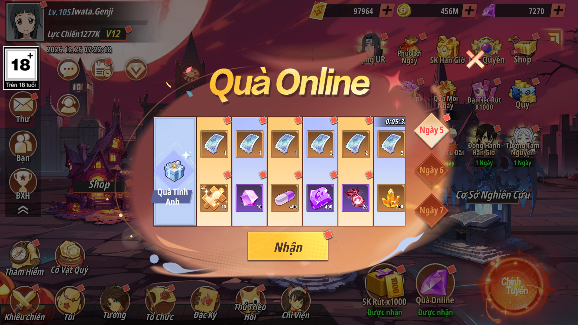- Tiến hành đăng nhập và online game mỗi ngày đạt đủ điều kiện của mốc sẽ được nhận thưởng