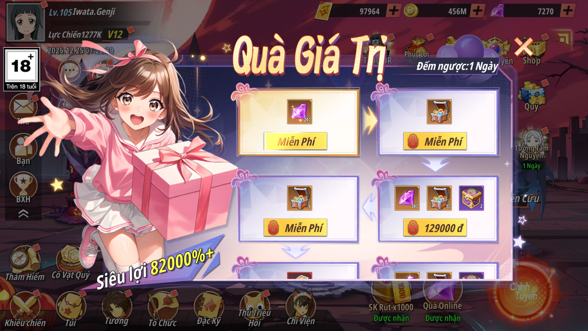 - Người tiến hành mở khóa các gói Quà Giá Trị theo mốc bao gồm: miễn phí và mua gói