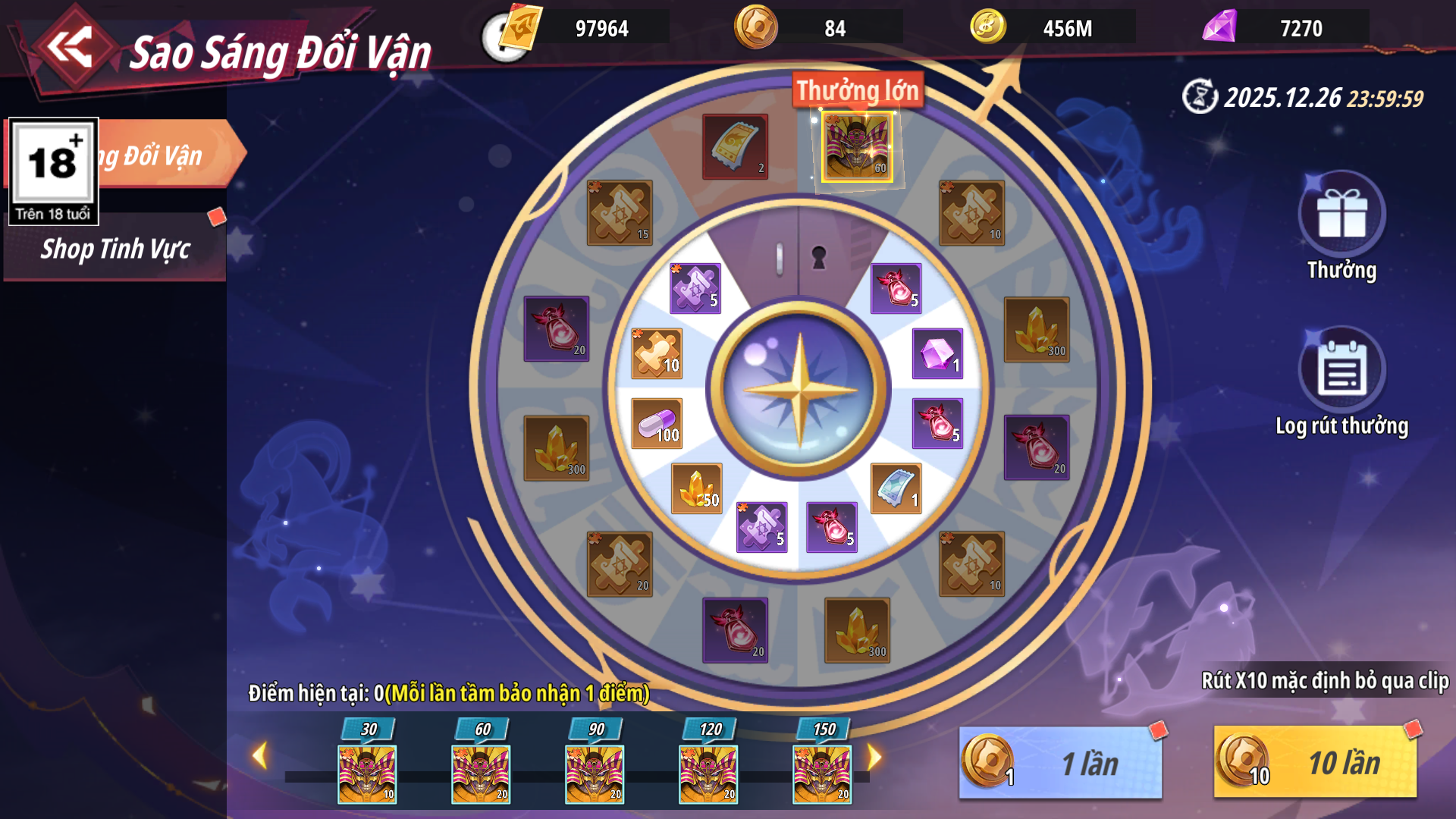 - Tham gia sự kiện Sao Sáng Đổi Vận, sử dụng Bụi Sao Quay 12 Chòm Sao rút thưởng, đảm bảo cơ hội nhận được mảnh thú triệu hồi SSS - Exodia