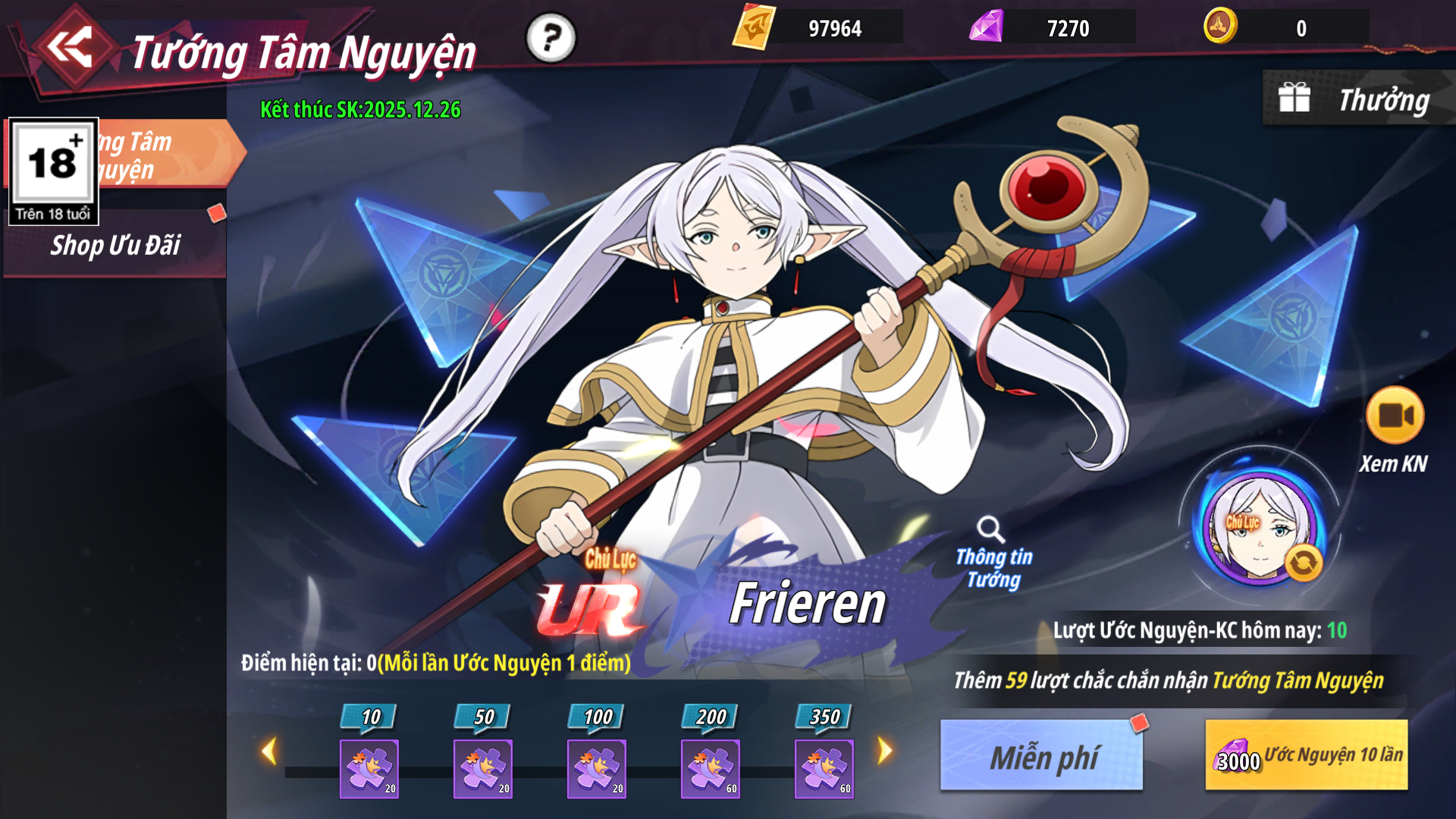 - Đạt số lượng ước nguyện yêu cầu sẽ được nhận thưởng chuyên thuộc