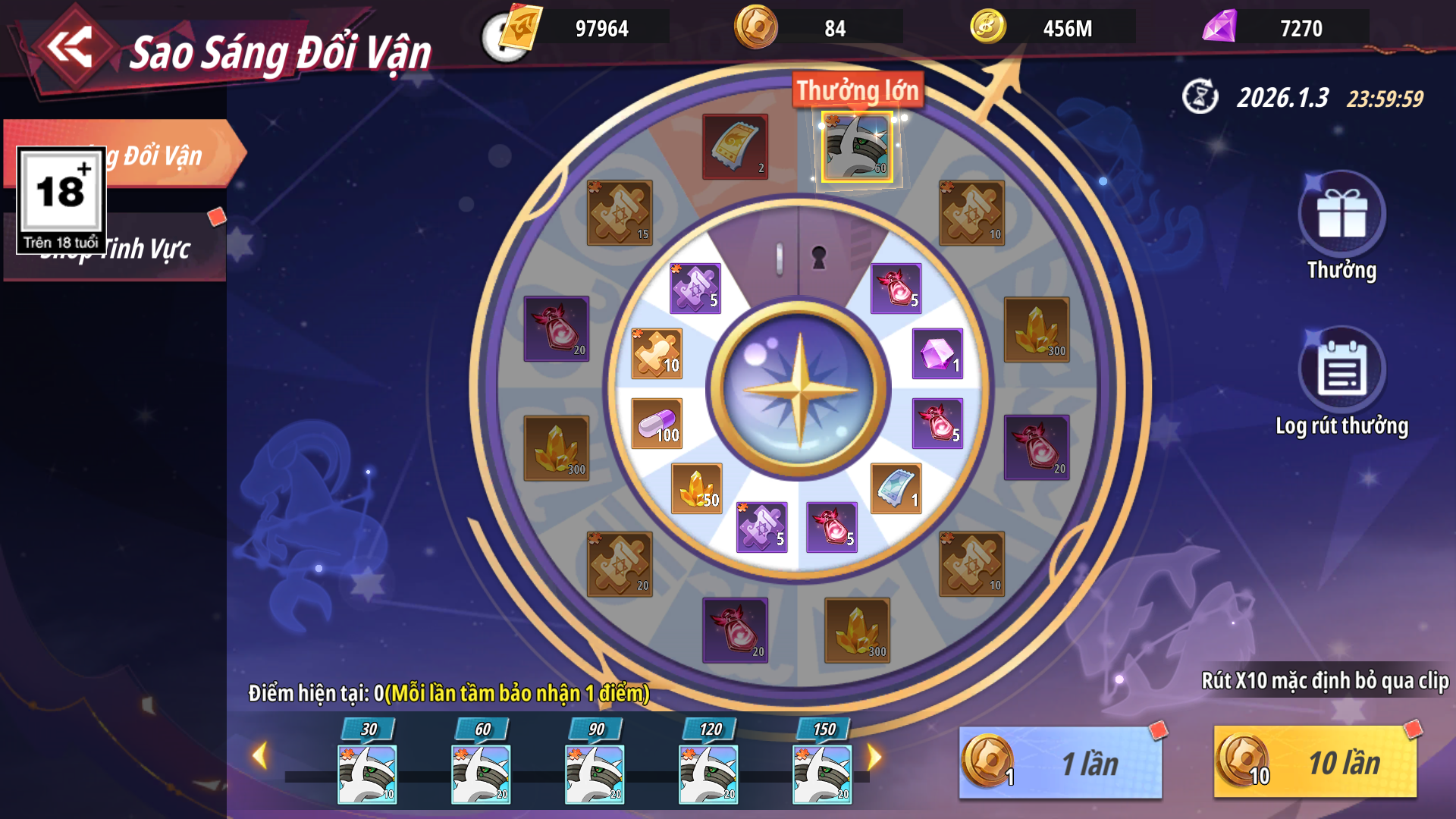 - Đạt số lượng ước nguyện yêu cầu sẽ được nhận thưởng chuyên thuộc