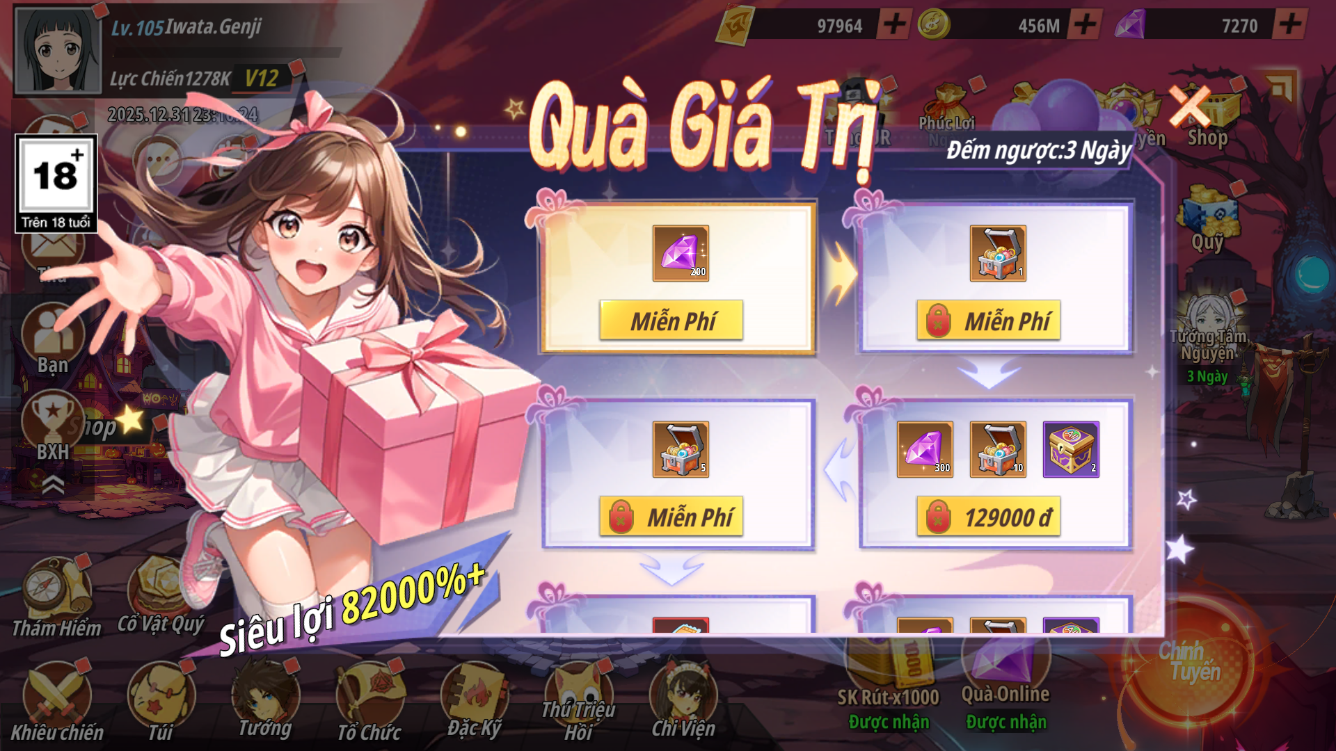 - Người tiến hành mở khóa các gói Quà Giá Trị theo mốc bao gồm: miễn phí và mua gói