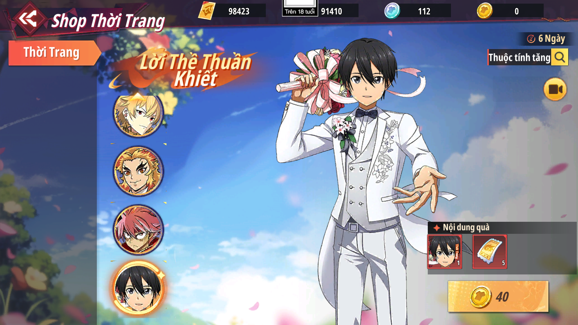 - Tuần đầu của server phần thưởng gồm:Satoru Gojo - Mùa Hè Dịu Mát, Son Goku SS3 - Thần Siêu Saiya, Roy Mustang - Bá Tước Vampire, Shirou Emiya - Muramasa, Sasuke - Hình Thái Susanoo, Saber - Party Đồ Bơi, Gilgamesh - Hoàng Đế, Regoku Kyojuro - Hiện Đại Sang Trọng, Natsu - Hóa Rồng, Kiritani Kazuto - Lời Thề Thuần Khiết