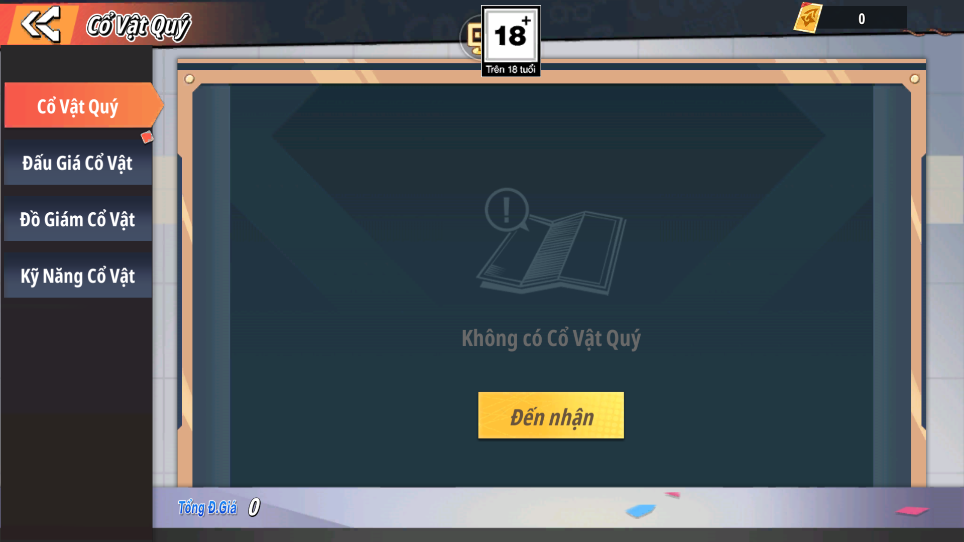 Trong tính năng Cổ Vật Quý bao gồm 4 mục chính: