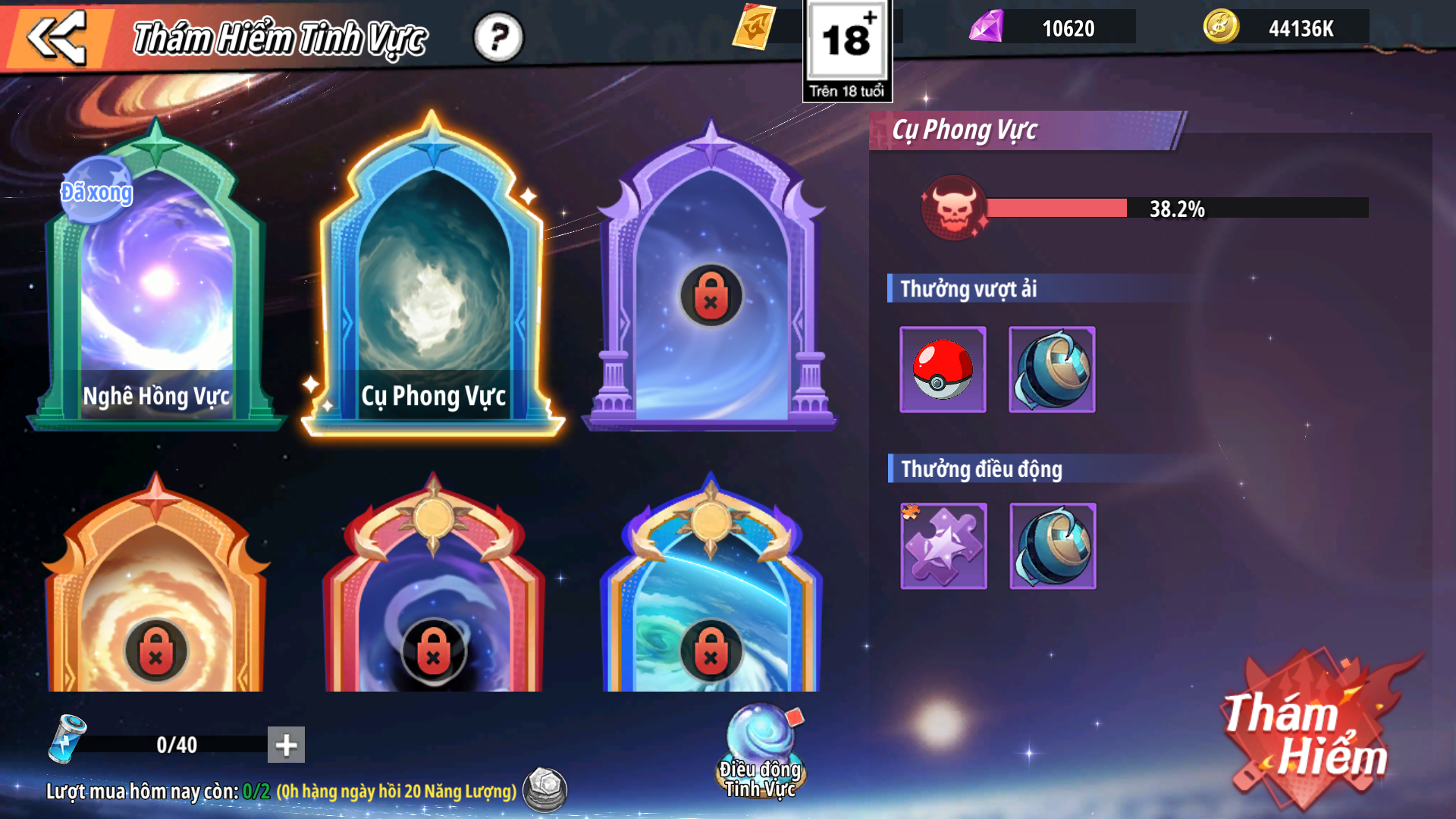 - Người chơi cần vượt Tinh Vực trước để mở khóa Tinh Vực sau.